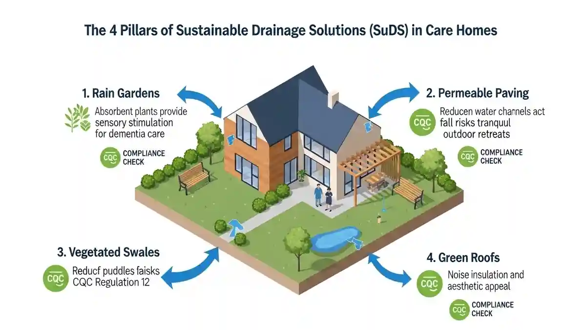 The future of sustainable drainage solutions CQC care home design is the integration of SuDS (Sustainable Drainage Systems). In Earls Court, Policy EN18 of the Local Plan encourages SuDS to manage surface water runoff, which often plagues the surrounding area.